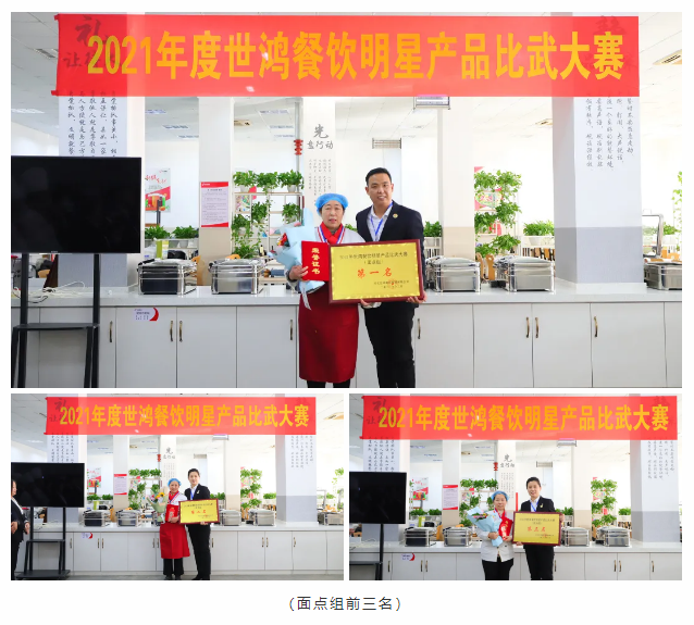 厨艺比赛分为热菜组和面点组两项比赛,每位选手都是精心准备、认真制作,激烈对决,缤纷呈现,将这一年的努力付出和用心态度都带入参赛作品中。经过评委们严谨认真的评审后最终评选出热菜组和面点组的前三名和技术能手奖。颁奖环节是最令人激动的环节,每一位获奖者由颁奖嘉宾用鲜花邀请至主席台,现场尽是大家热情的祝贺和掌声,充满仪式感的颁奖环节令世鸿的家人们开心而感动。大赛是对各项目厨艺基本功的检验,同时利用这个平台可以使大家相互取长补短,厨艺技能得以提升。新的一年,虎扑体育将紧跟时代步伐,不断推陈出新。做高品质团餐,更好的服务于社会。